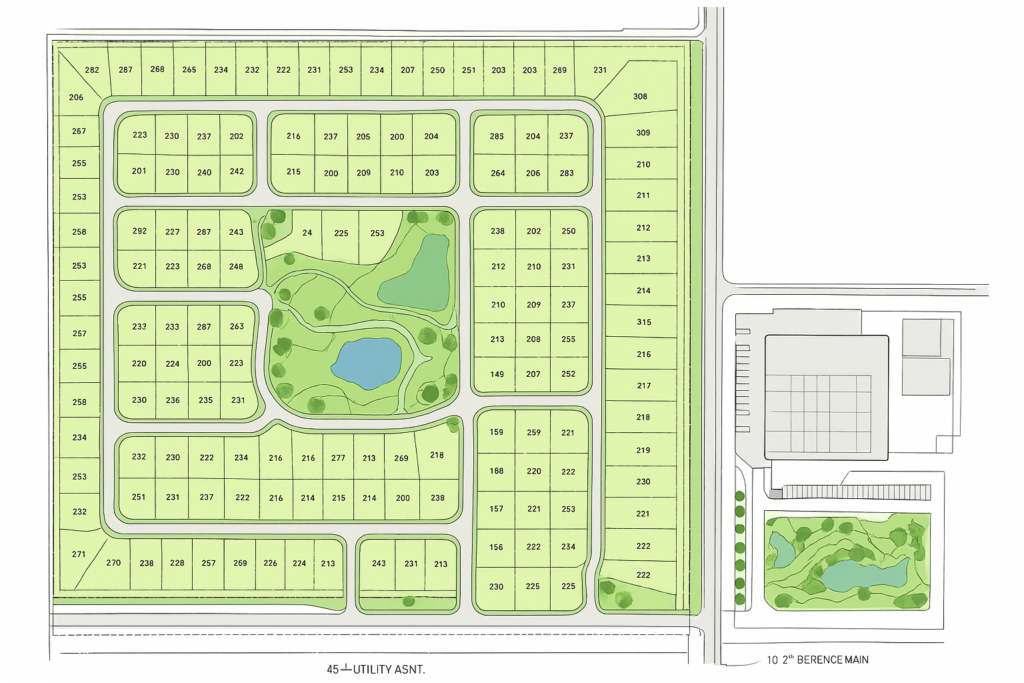 • Roads & Utilities: Network planned to support full-density residential build-out across all acreage.